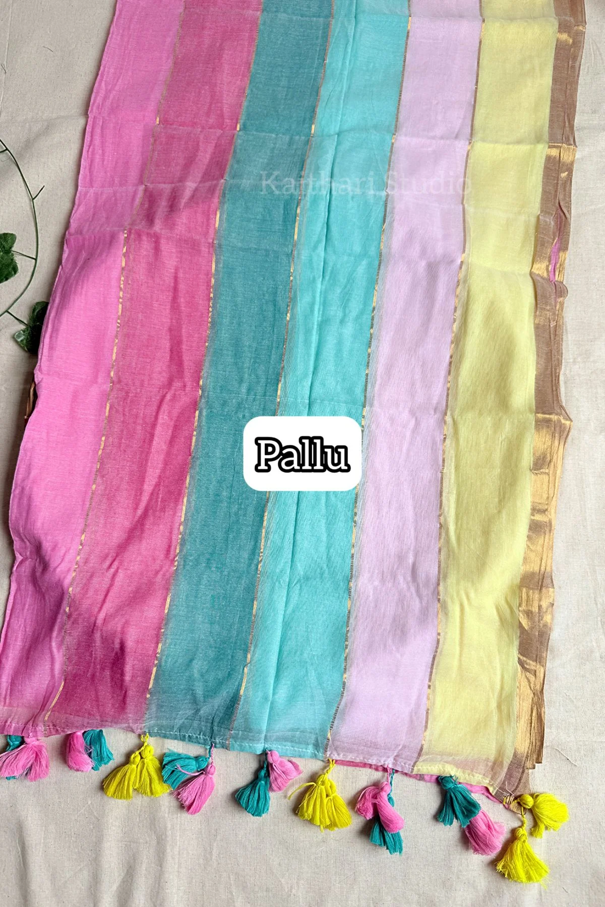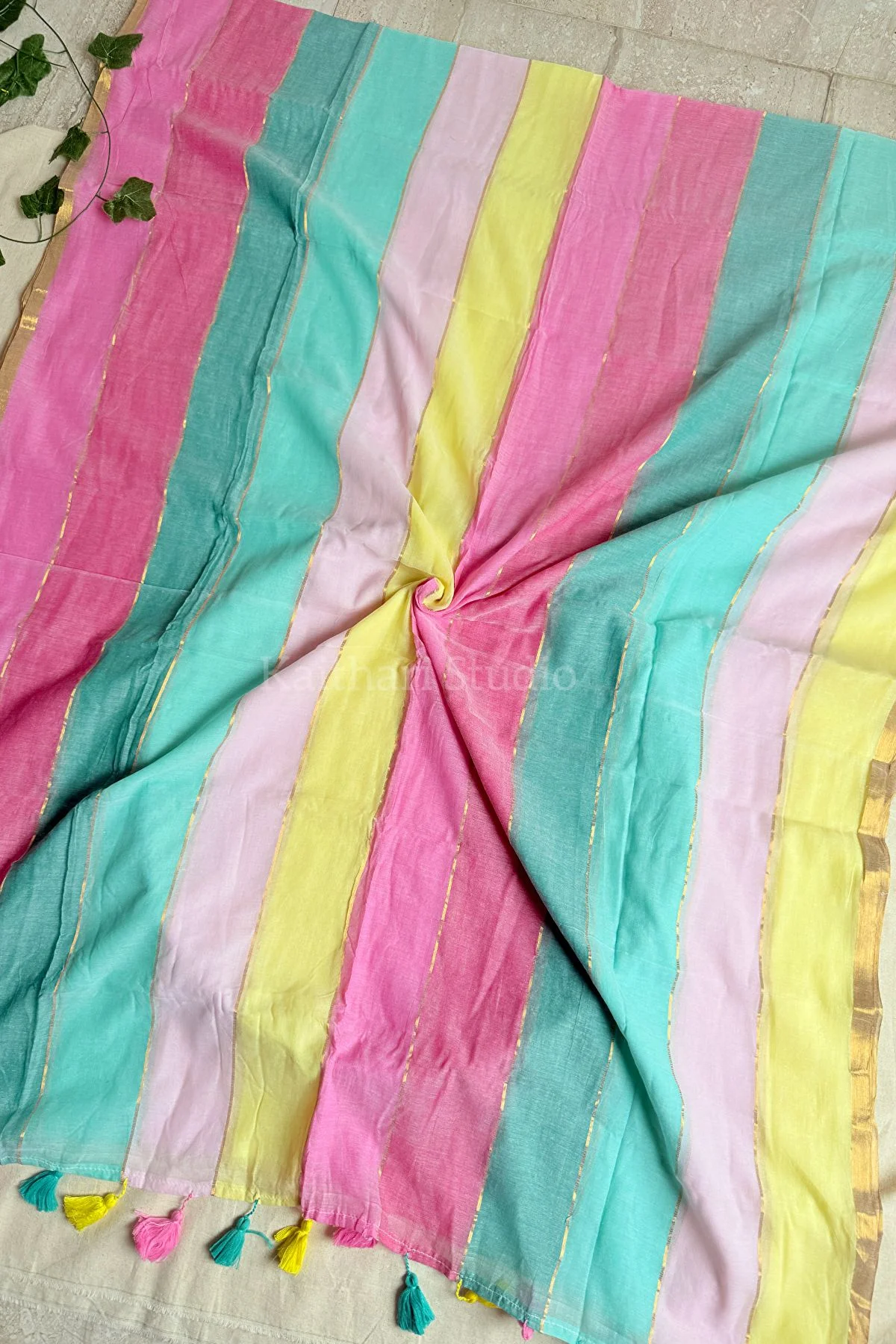 Mul cotton saree in dreamy pastel shades, inspired by the soft layers of Cassata.