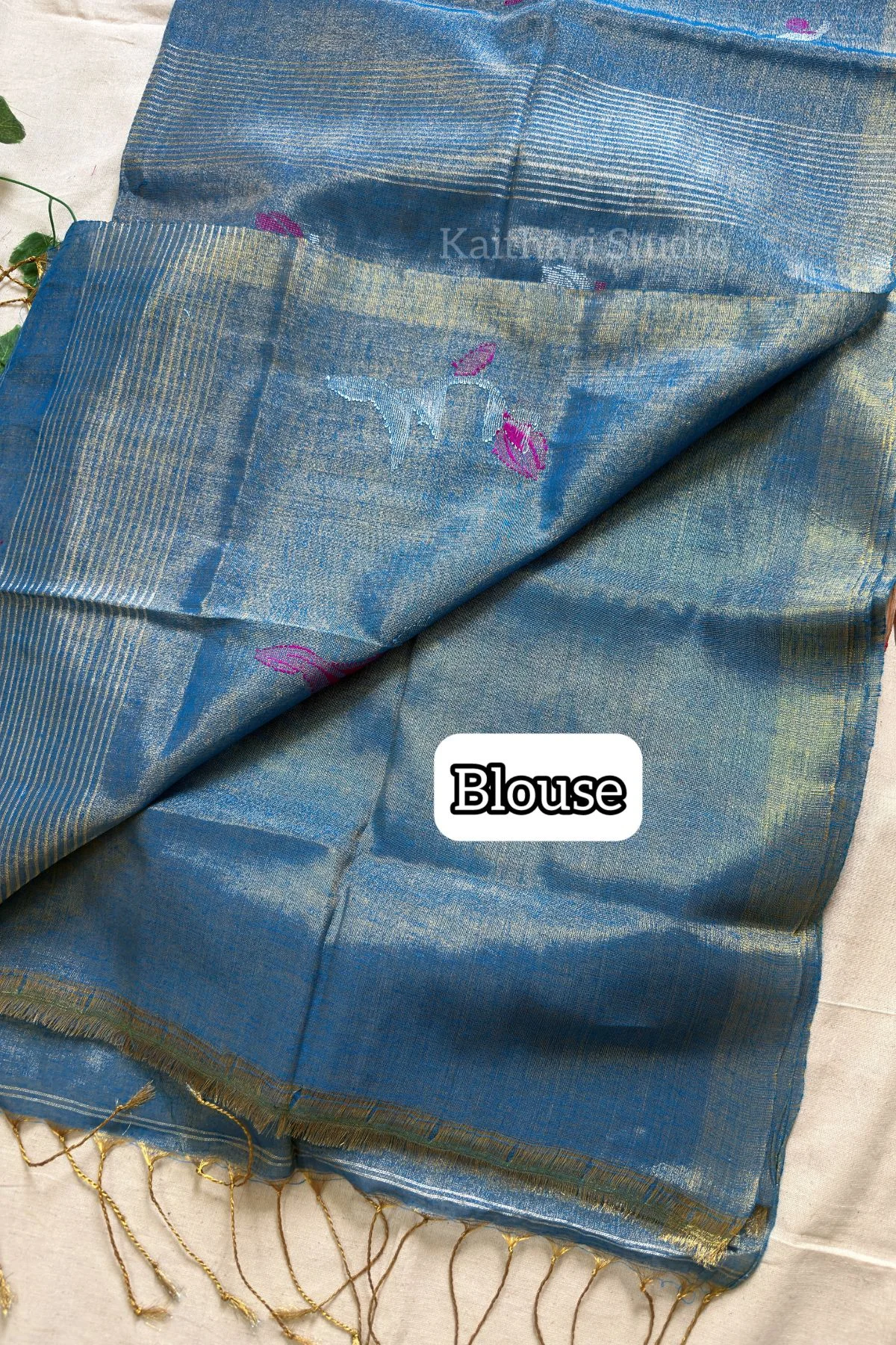Handloom Tulip Linen Zari Saree – Blue -KS105