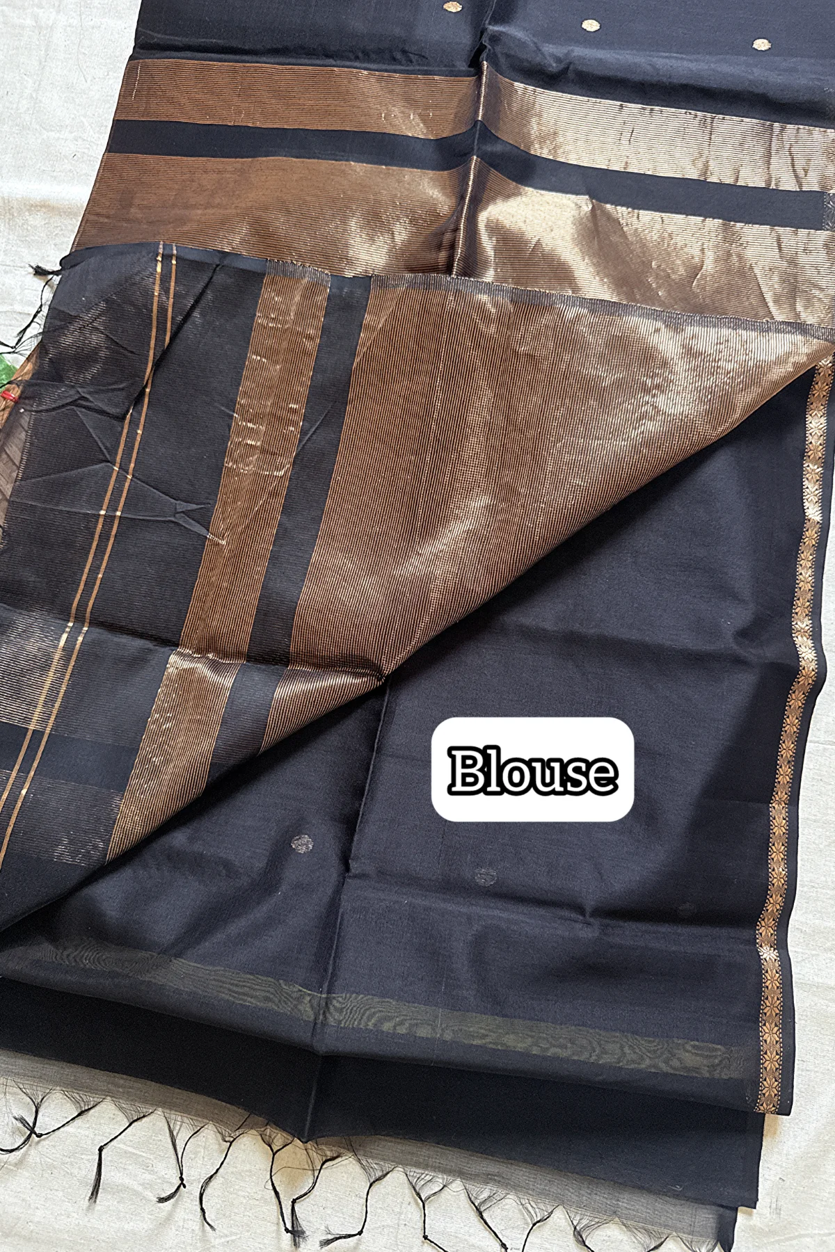 Crafted in pure Handloom Maheshwari Silk Cotton, this beauty features:
