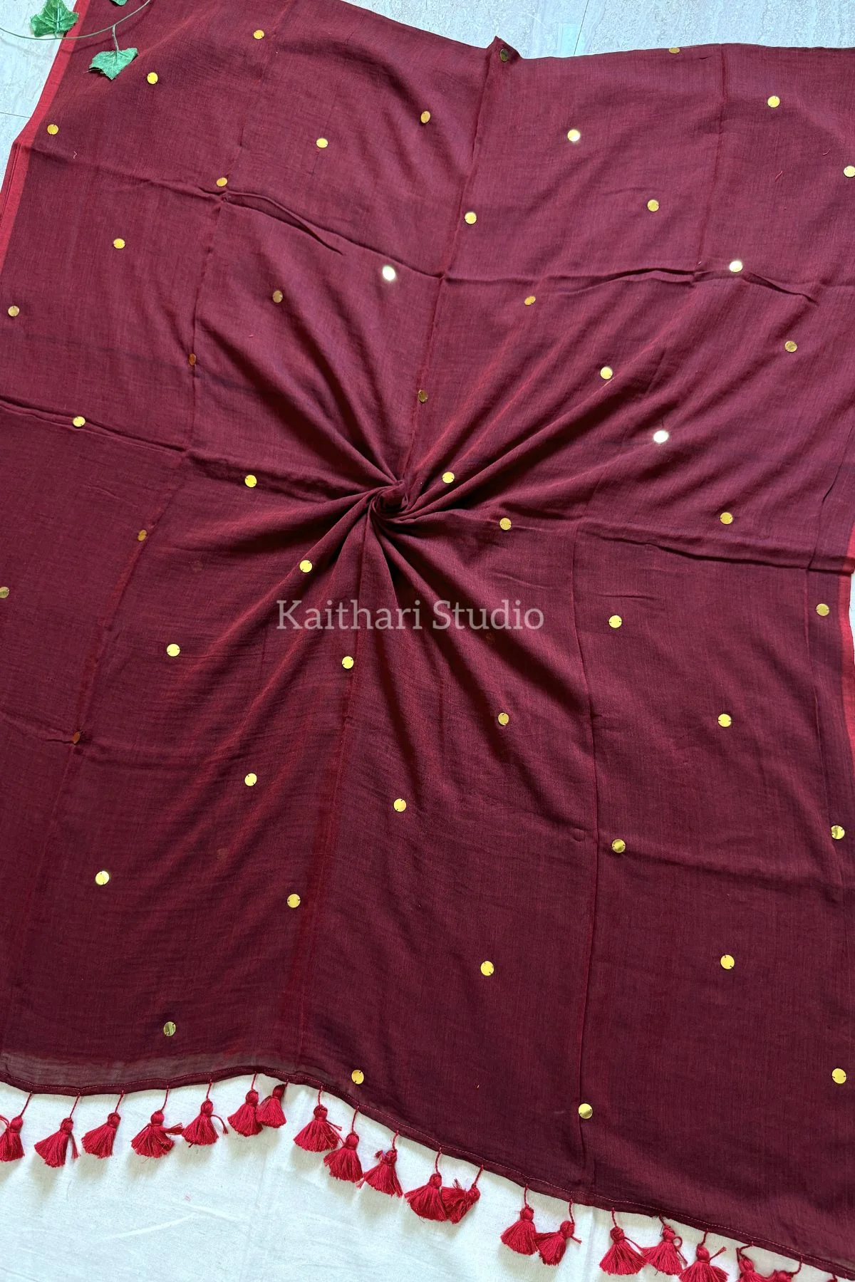 This saree is crafted in soft mul cotton, beautifully detailed with hand-stitched sequins. The fabric is extremely lightweight, breathable, and effortless to carry — designed for comfort while keeping the elegance intact.
