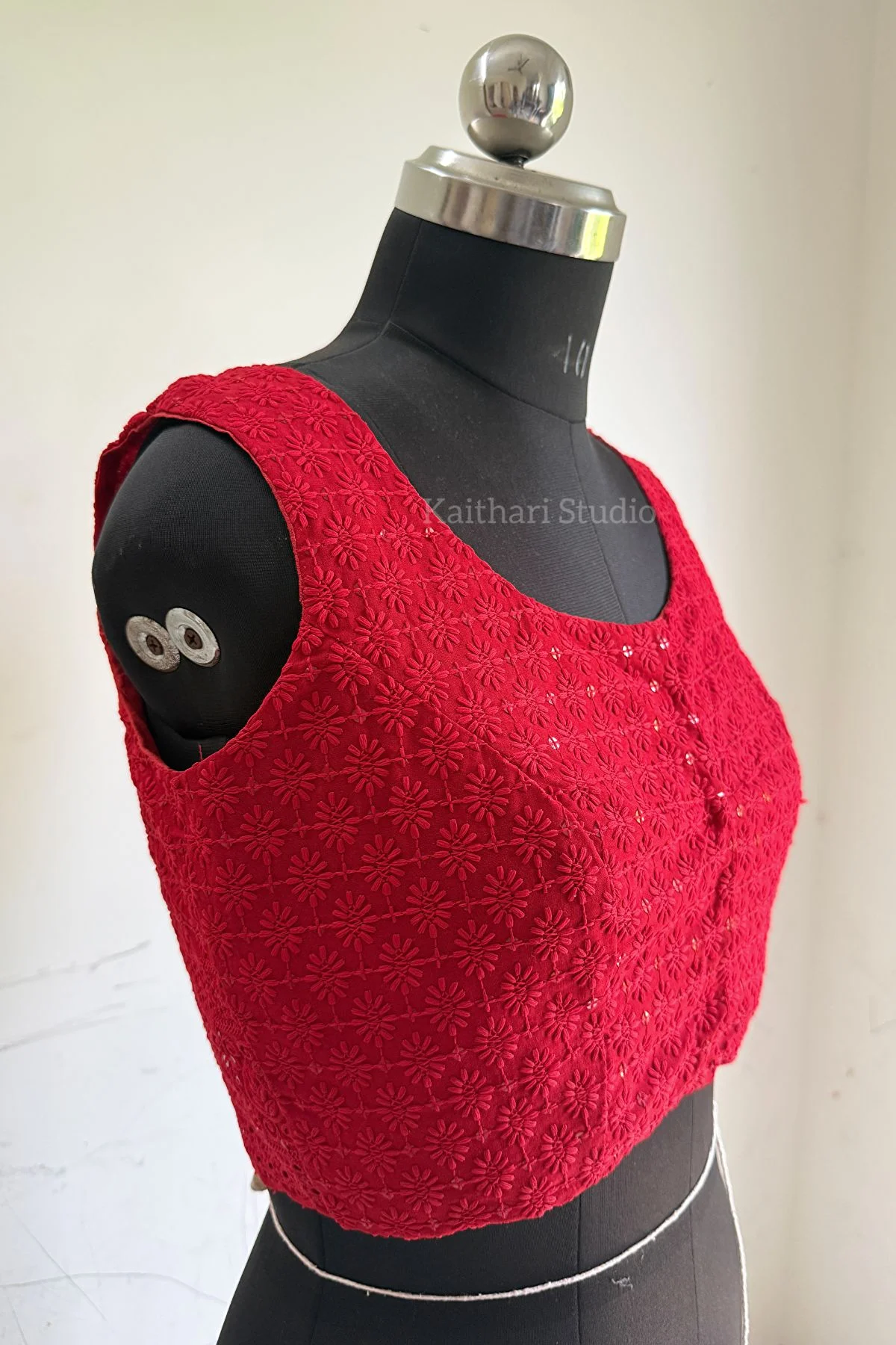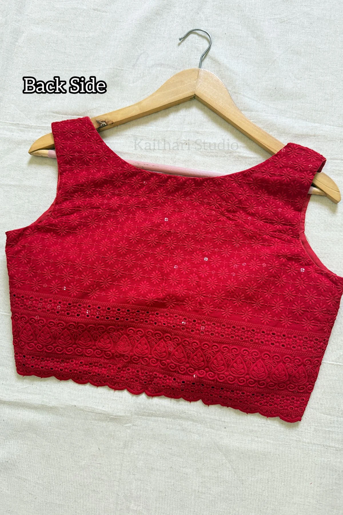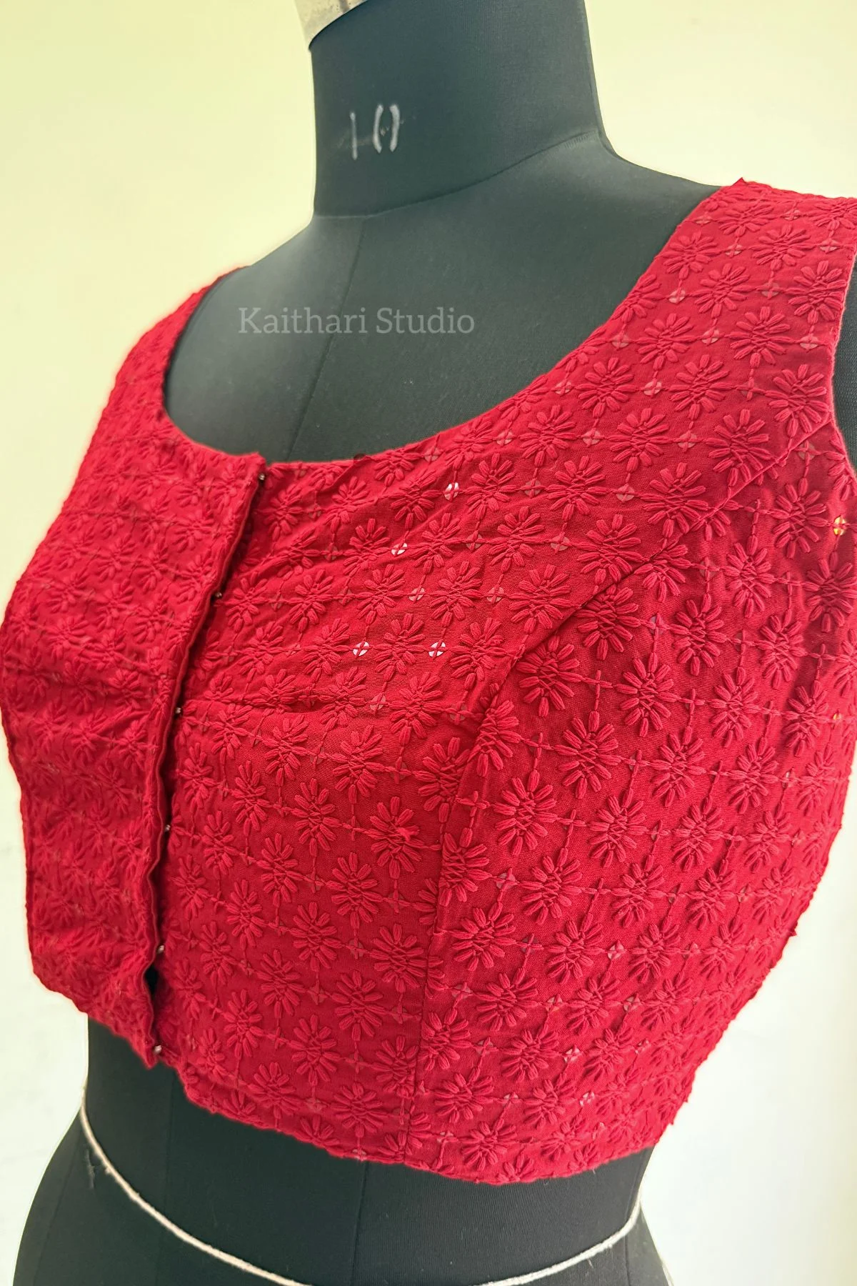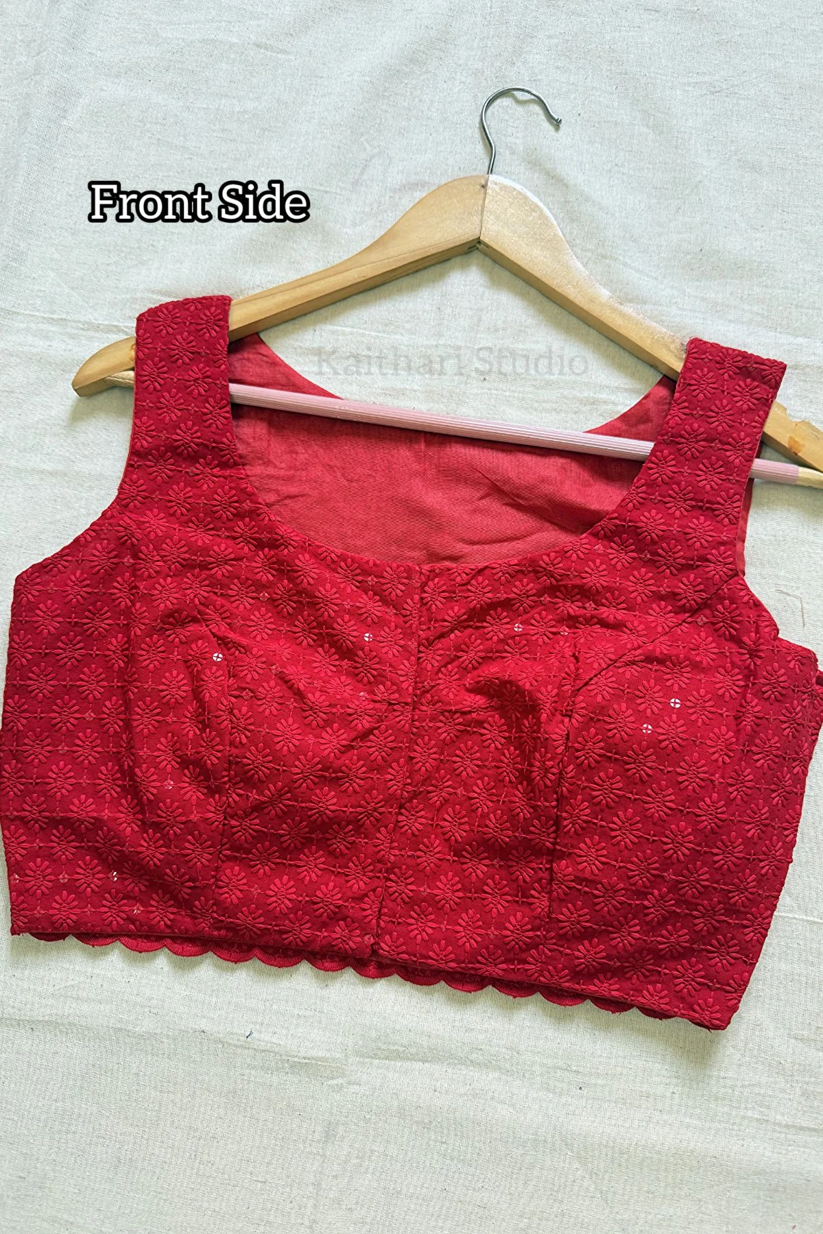 Be the first to review “Self Color Embroidery Blouse- Red KS135
