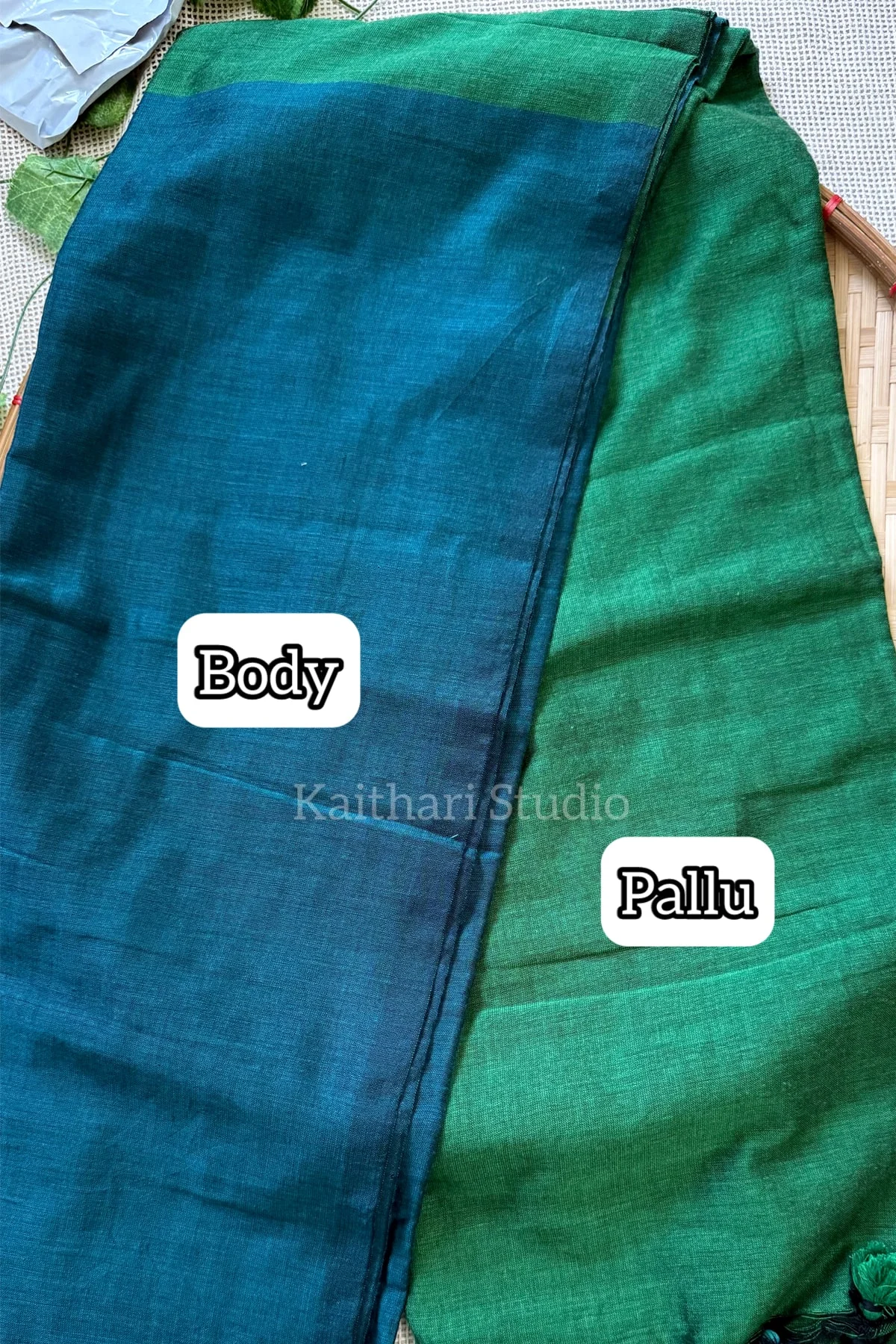 Be the first to review “Soft Cotton Plain Saree – Peacock blue with Green – KS058